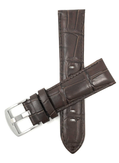 Bandini 24mm Brown Italian Leather Watch Band - Crocodile Pattern - Semi-Padded 24mm / Brown / Silver Buckle |  Dial