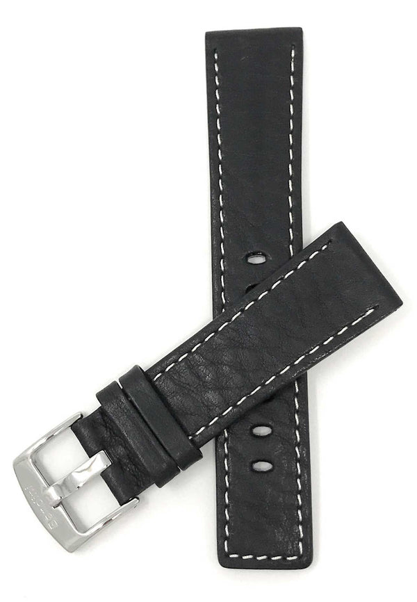 Bandini 26mm Black Italian Leather Watch Band - Classic - White Stitch -  Semi-Padded 26mm / Black / Silver Buckle |  Dial