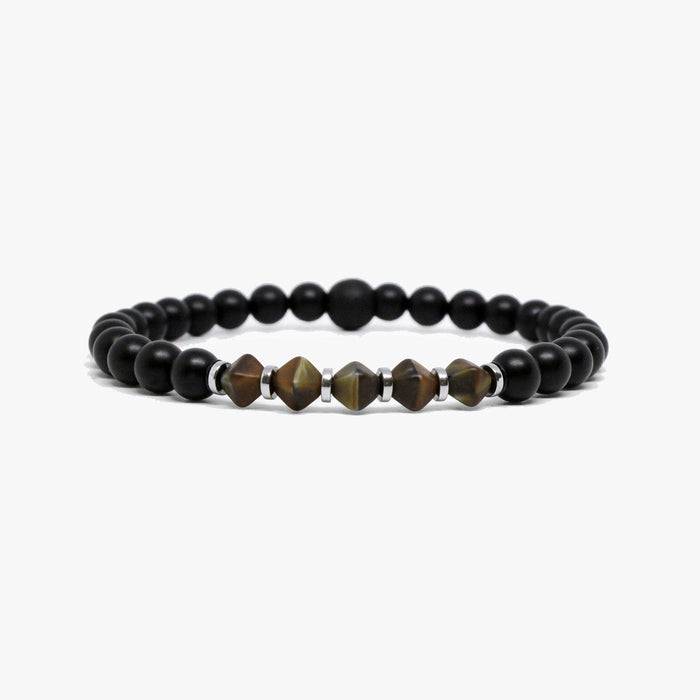 Brown Bicone Czech Glass,  Black Onyx Bracelet M (7.25" Wrist) |  Dial