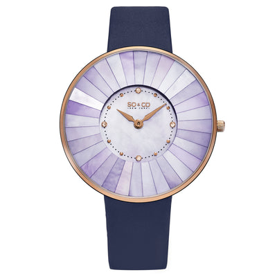 Women's Mosaic Mother-of-Pearl Lined Dial Ultra Slim Quartz Watch, Rose Tone Case on an Blue Satin Twill Covered Genuine Leather Strap, Blue Mother-of-Pearl Dial, with Crystal and Rose Tone Accents