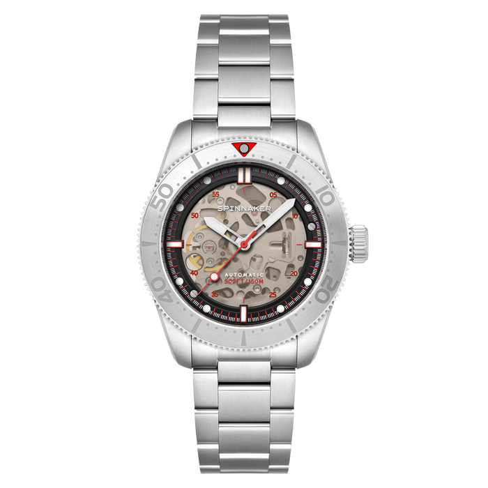 Croft 42 Skeleton Automatic Silver & Red / Stainless Steel | Black Dial