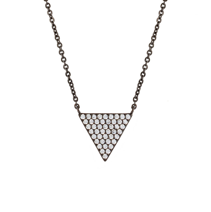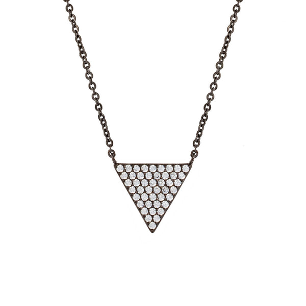 Elegant Confetti Women's 18K Black Gold Plated CZ Simulated Diamond Pave Triangle Pendant Necklace 18k Black Gold