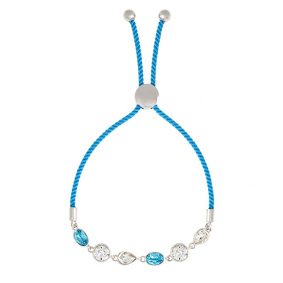 Elegant Confetti Women's 18K White Gold Plated Blue and White Swarovski Crystal Adjustable Bolo Blue Rope Bracelet 18k White Gold