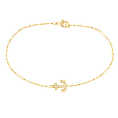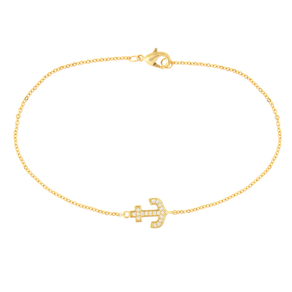 Elegant Confetti Women's 18K Yellow Gold Plated CZ Simulated Diamond Anchor Pendant Bracelet 18k Yellow Gold