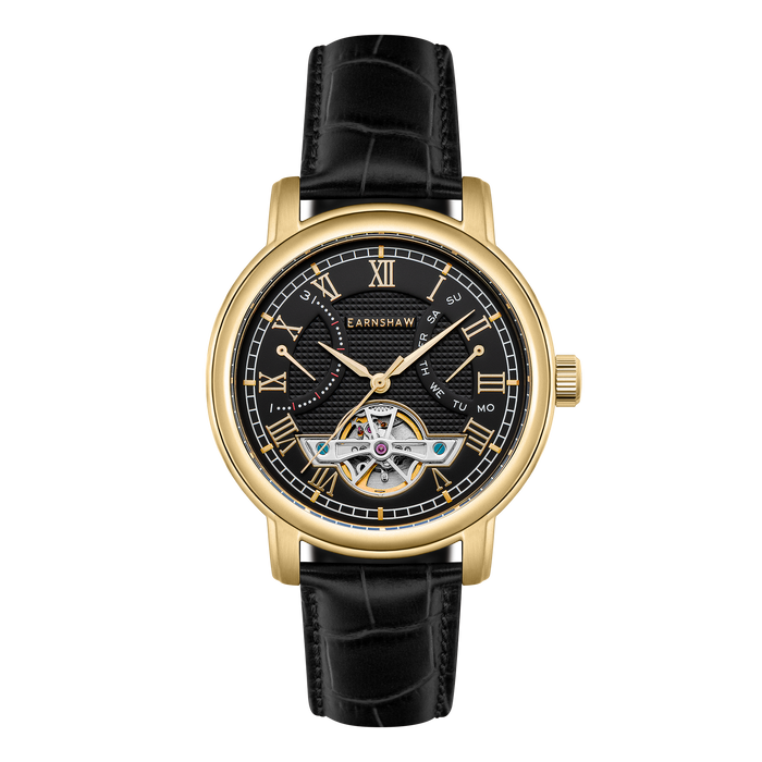 Heritage Longcase Double Retrograde Calendar Open Heart Automatic Black / Genuine Leather Strap | Black Dial