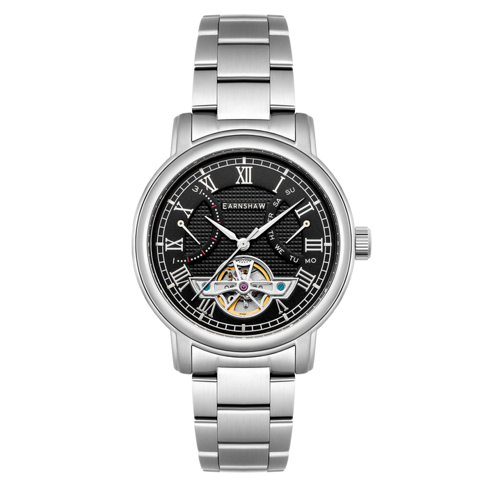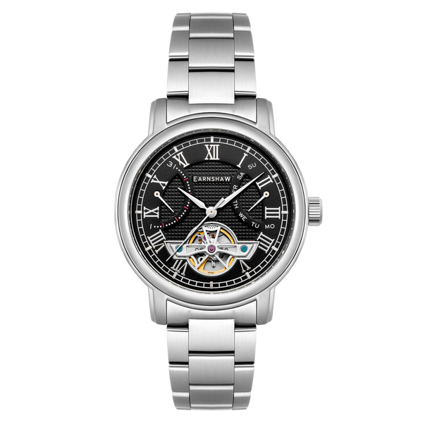 Heritage Longcase Double Retrograde Calendar Open Heart Automatic Black / Stainless Steel | Black Dial