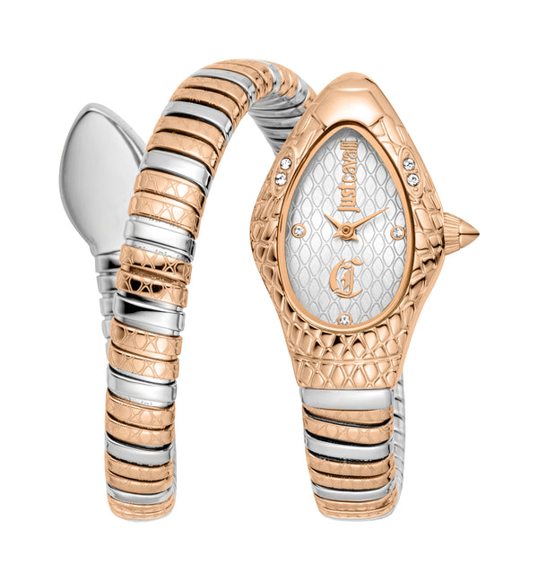Just Cavalli 20mm / Silver and Rose Gold / Short | Silver Dial