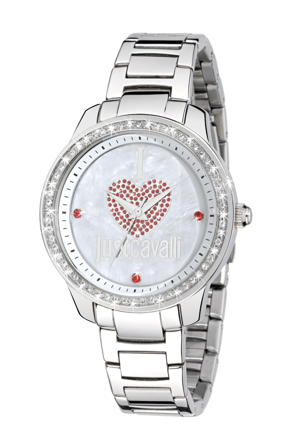 Just Cavalli Women's R7253196503 Shiny Crystals mm Quartz Watch. The case is built with high-quality Stainless Steel and can withstand up to 30 M of water resistance. The dial is White and protected by a Mineral crystal. The Bracelet is Silver Stainless Steel with a Deployment Clasp. The movement is Quartz. (R7253196503)