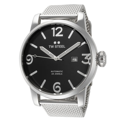 TW Steel Men's Maverick Automatic Watch. The case is built with high-quality Stainless Steel and can withstand up to 100 m (330 feet) of water resistance. The dial is Black and protected by a Mineral Crystal. The Bracelet is Silver Stainless Steel with a Deployment Clasp. The movement is Made in Japan Automatic. (TWS-MB16)