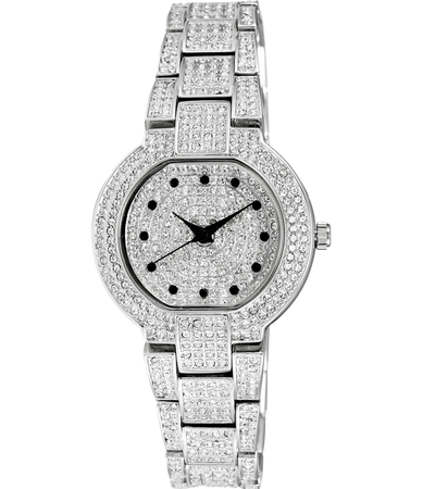 Adee Kaye Women's Brass Case and Band, Rhodium plated, 588 pcs setting stone, Silver tone.