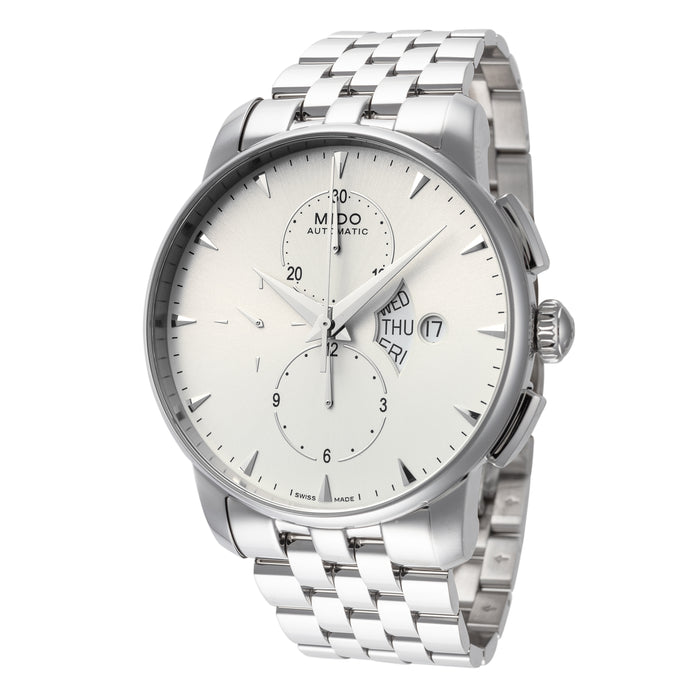 Mido Men's Baroncelli 42mm Watch M860741112. The case is built with high-quality Stainless Steel and can with stand up to 50 m (165 feet) of water resistance. The dial is Ivory and protected by a Sapphire Crystal Scratch Resistant. The Bracelet is Silver Stainless Steel and the movement is Automatic. (M860741112)