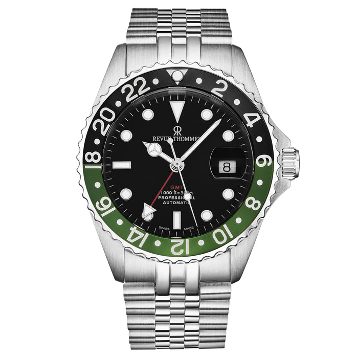 Revue Thommen Men's 'Diver' GMT Black Dial Black and Green Bezel Automatic Watch 17572.2238