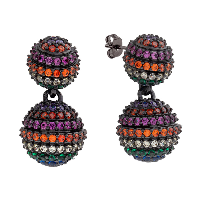 Elegant Confetti Women's 18K Black Gold Plated Rainbow CZ Simulated Diamond Pave Ball Drop Statement Earrings 18k Black Gold