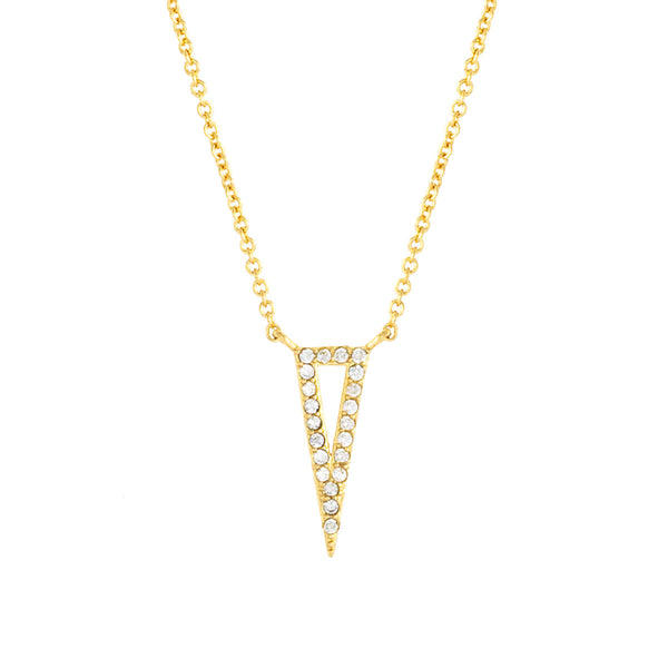 This chic and edgy triangle necklace stands out on its own and plays well with others for a layered look.