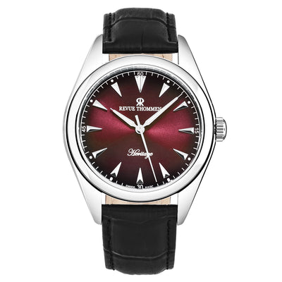 Revue Thommen Men's 'Heritage' Red Dial Black Leather Strap Automatic Watch 21010.2536