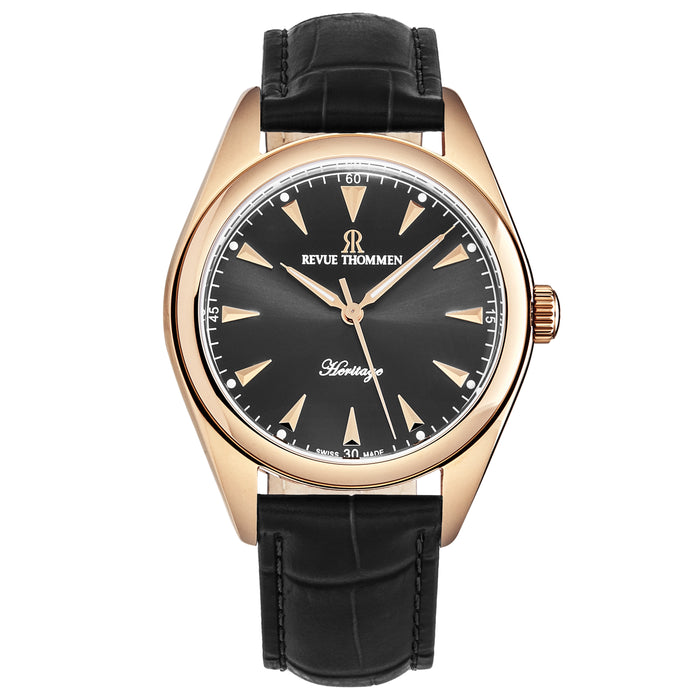 Revue Thommen Men's 'Heritage' Grey Dial Black Leather Strap Automatic Watch 21010.2561