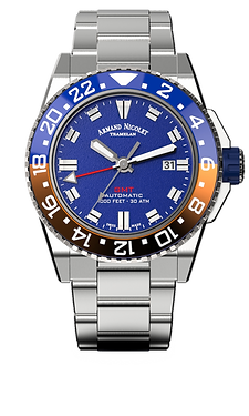 Mechanical, automatic with a power reserve of 50 hoursCalibre GMT AN330 (based on SW-330 modified per Armand Nicolets specifications)Dial with luminous indexes and hands.Case with antiglare treated sapphire crystal.Screwed back. Unidirectional turning ceramic bezel.