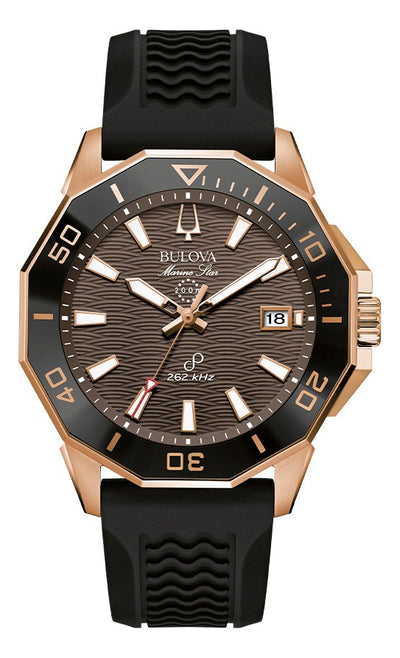 Welcome! OFFICIAL Bulova STOREBulova 98B421 Analog Quartz Black WatchPRODUCT DESCRIPTION- Brand: Bulova- Model: 98B421- Function: Analog- Band Material: Silicone- Case Material: Stainless Steel- Case Diameter: 43mm- Crystal Type: Sapphire- Movement: Quartz- Gender: Men's- Warranty: 12 months- Water Resistance: 20 ATM (200 meters)IMPORTANT!The watch is water resistant to 20 ATM (200 meters), so it can withstand rain, splashes, showers, calm swimming, shallow immersion, and deep water immersion. (We do not recommend exposing it to high-temperature water, such as hot showers.)KEY BENEFITSDurability: With its stainless steel case and high-quality silicone strap, this watch is designed to withstand daily wear and tear, ensuring it will accompany you in all your activities.Style: Its design fits perfectly with any occasion, from formal meetings to casual events, ensuring you always look fashionable.Comfort: With an ergonomic strap, this watch offers a comfortable and secure fit, ideal for all-day wear without discomfort.