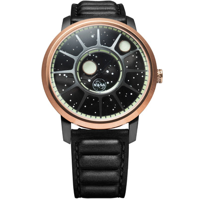NASA Apollo 15 American Automatic Lunar Module Rose gold/black leather strap | Black Dial