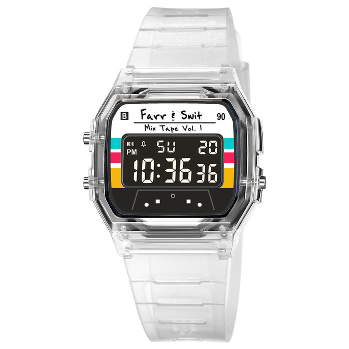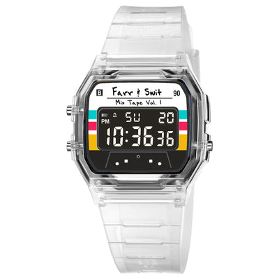 Inspired by the legendary 1980's 3-button digital watch, the Retro Digital "Mix Tape Vol. 1" from Farr + Swit captures the essence of cassette mix tapes. The B Sides flips it and has a negative display.