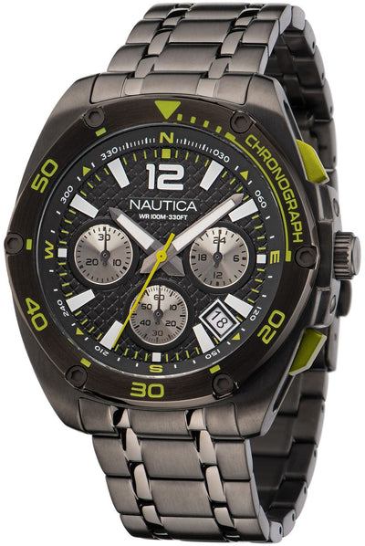 IP Gunmetal SST Case Black & Green Top Ring Black Dial Stainless Steel Bracelet