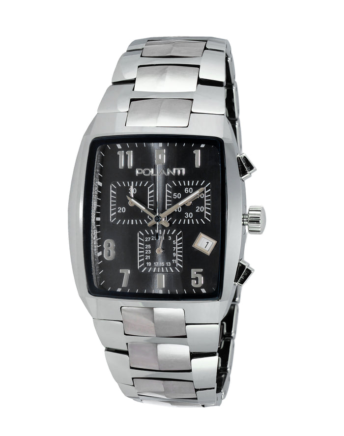 Polanti Men's, Swiss ISA 8171 Chronograph Movement, Tungsten Case and Band, Black Day-Date Dial,