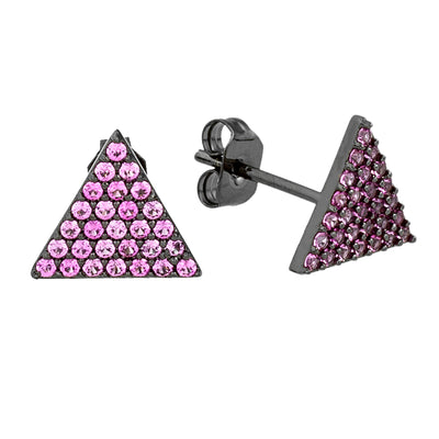 Elegant Confetti Women's 18K Black Gold Plated Pink CZ Simulated Diamond Pave Triangle Stud Earrings 18k Black Gold