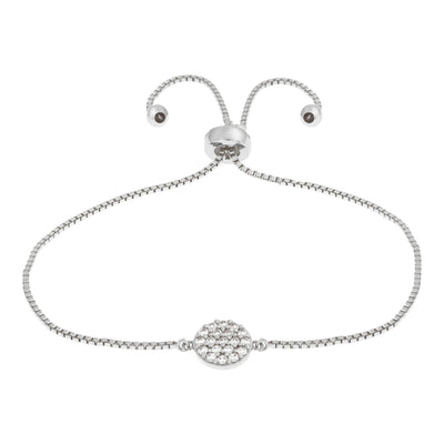 Never worry about your bracelet hanging loose! Our adjustable bolo bracelet is adorned with a micropave medallion pendant that sits boldly in the center.