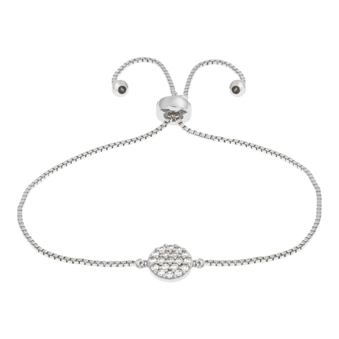 Elegant Confetti Women's 18K White Gold Plated CZ Simulated Diamond Circle Adjustable Bolo Bracelet 18k White Gold