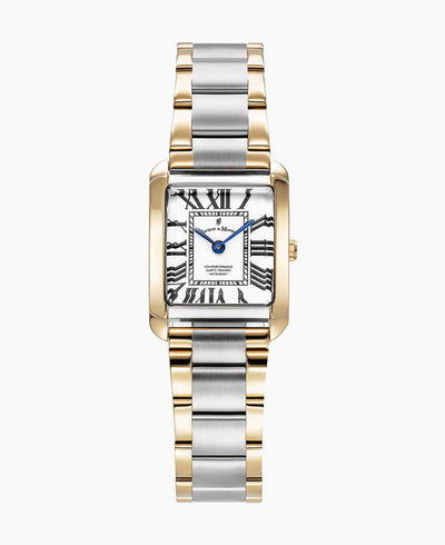 A captivating ode to timeless elegance, the EMILY collection is crafted for women who cherish classic sophistication and refined style. With a petite 22x19mm stainless steel case and a two-tone bracelet, it beautifully balances vintage charm with modern grace. The intricate Roman numeral hour markers on the vintage-inspired dial evoke a nostalgic allure, capturing the essence of bygone eras in every glance. This exquisite timepiece serves as a reminder of enduring elegance and graceful design. Comfortable and stylish, it wraps gently around the wrist, offering an everyday touch of luxury.Each element of this watch is thoughtfully designed to blend timeless style with practicality. The stainless steel case and elegant two-tone bracelet bring durability and comfort, making it perfect for daily wear or special moments. The intricate Roman numerals and vintage-inspired dial transport the wearer to an era of understated charm and refined taste. Every detail reflects a dedication to craftsmanship, ensuring that this timepiece remains as beautiful as it is functional. It seamlessly transitions from formal occasions to casual outings, enhancing any look with grace.A symbol of elegance and lasting sophistication, the EMILY collection celebrates the charm and grace of its wearer. It complements every outfit and occasion, exuding confidence and timeless appeal. The refined curves of the case and the classic Roman numerals embody a commitment to enduring quality and style. This timepiece tells a story of tradition and modern elegance, perfectly balanced in every detail. It reflects both heritage and the present, making it a treasured addition to any collection.