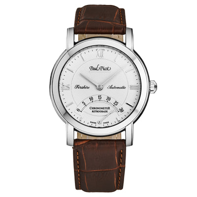 Paul Picot Men's 'Firshire' Silver Dial Brown Leather Strap Automatic Watch P7053.20.731