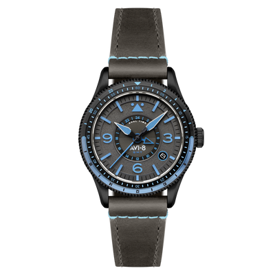 Designed to master the art of global adventure, the Airmaster GMT combines a bold modern aesthetic with classic aviation-inspired design. No matter you are crossing continents or navigating the city, the timepiece tracks three time zones with with an NH34 Japanese automatic GMT movement. Paired with a comfortable leather strap, it is ready for adventures near and far.