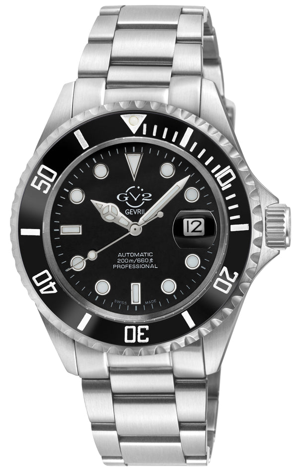 Liguria GV2 by Gevril Swiss Automatic, Black Dial, Black Bezel, SS Bracelet | Black Dial