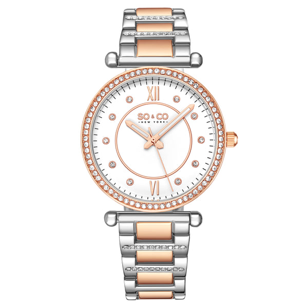 Women's Crystal Studded Silver/Rose Case and Bracelet, White Dial Watch