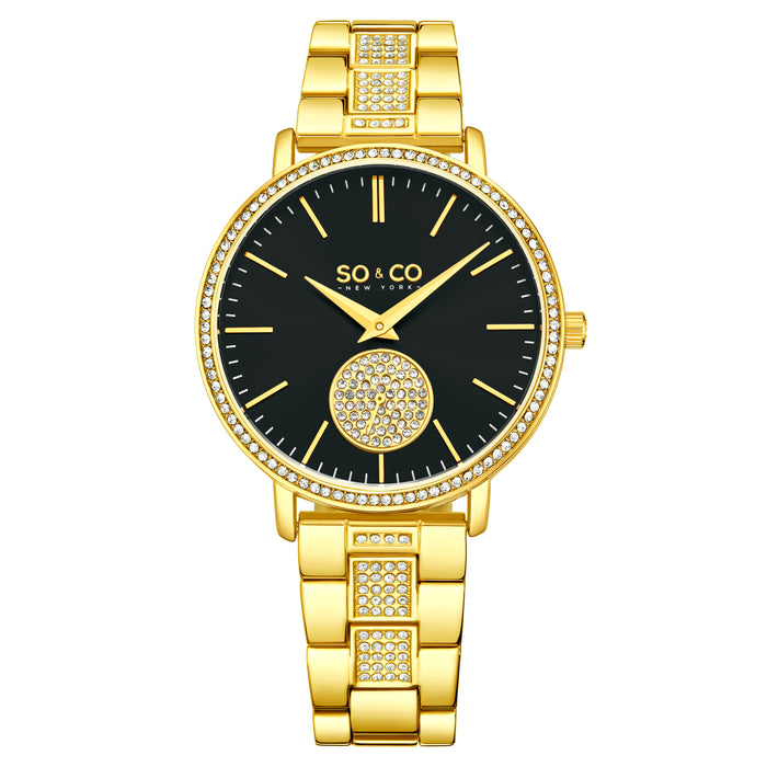 Women's Crystal Studded Gold Bracelet, Gold Dial with Crystal Studded Subdial, Crystal Studded Bezed