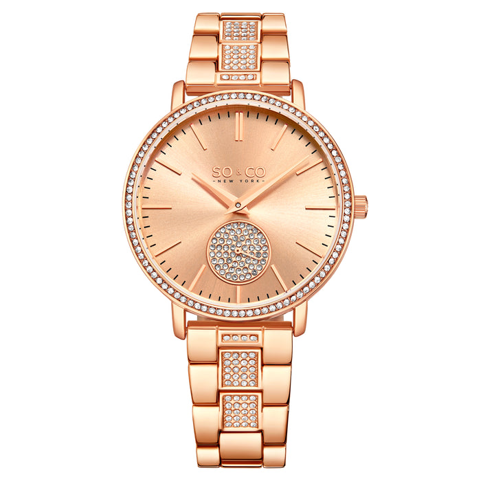 Women's Crystal Studded Rose Bracelet, Rose Dial with Crystal Studded Subdial, Crystal Studded Bezed