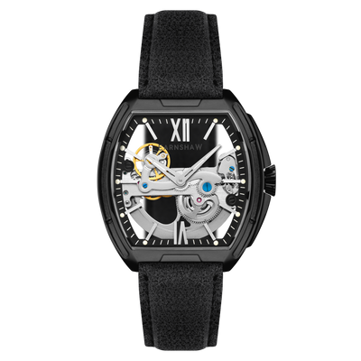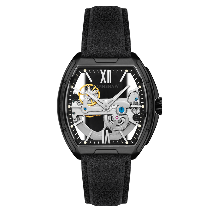 Sleek and striking, the Knightsbridge Automatic embraces openwork design with a fully transparent dial and exposed movement. Housed in a 45mm barrel-shaped case, this spectacular timepiece features Roman numeral accents and a double-curved lens. Pairing traditional elegance with contemporary flair, it redefines classic watchmaking.