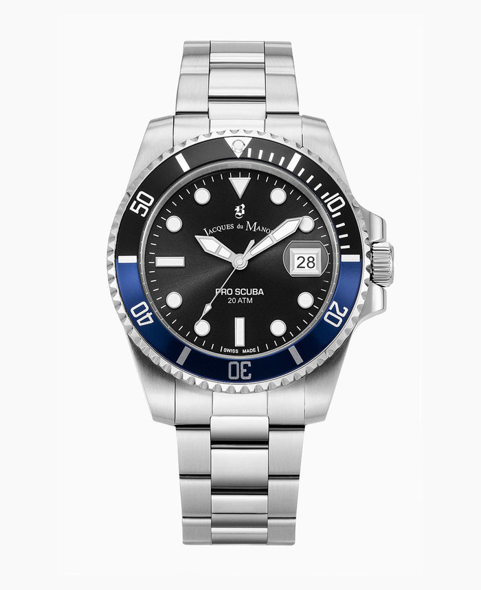 The successful mix of elegant design and the sporty attributes of a diver's watch makes the new PRO SCUBA with a case diameter of 40 mm the ideal dress diver, equally wearable on formal occasions as well as with casual or (diving) sports outfits.