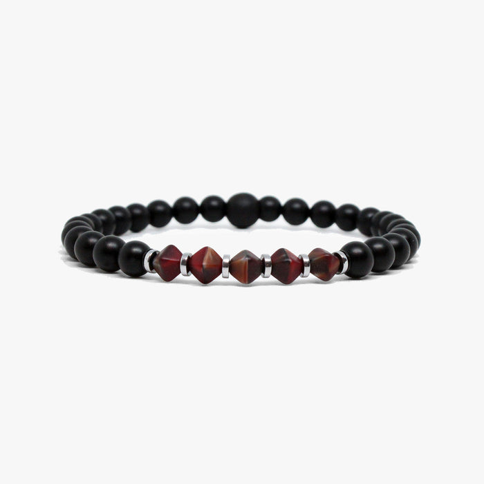 Red  Bicone Czech Glass,  Black Onyx Bracelet M (7.25" Wrist) |  Dial