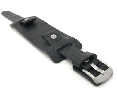 425 | 22mm Black Mens Leather Band Wrist Cuff, Rectangular Bund Strap 22mm / Black / Silver Buckle