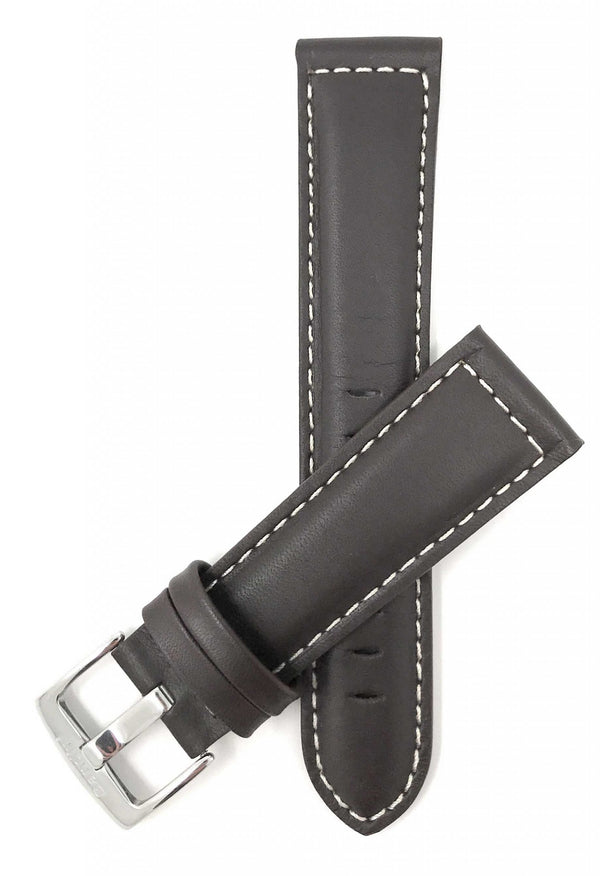 Bandini 24mm Brown Italian Leather Watch Band - Silver Buckle - Classic - Padded