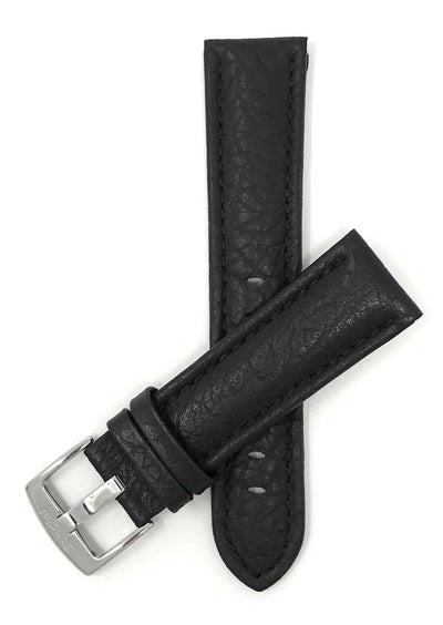 Bandini 24mm Black Italian Leather Watch Band - Silver Buckle - Buffalo Pattern - Padded