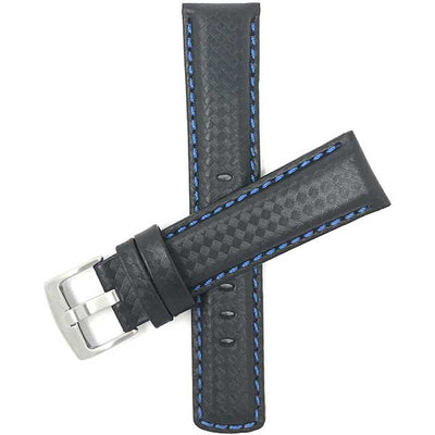 530 | 20mm Black and Blue Mens Leather Carbon Fiber Pattern Watch Band 20mm / Black and Blue / Silver Buckle