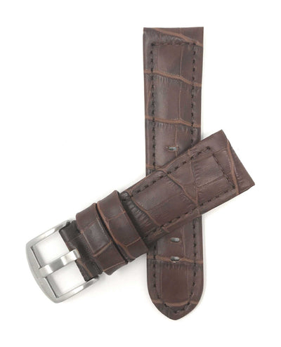 Bandini 18mm Brown Italian Leather Watch Band - Alligator Pattern - Padded 18mm / Brown / Silver Buckle |  Dial