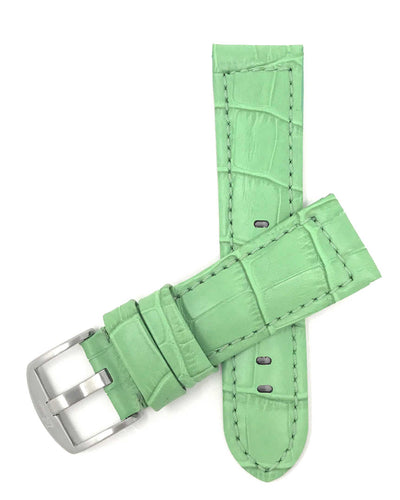 Bandini 20mm Green Italian Leather Watch Band - Silver Buckle - Alligator Pattern - Padded