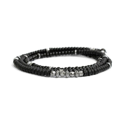 Black Czech Glass Triple, Scattered Sterling M (7.25" Wrist) | Dial