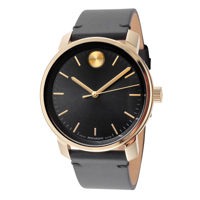 Movado Men's Bold Quartz Watch. The case is built with high-quality Stainless Steel and can withstand up to 30 m (100 feet) of water resistance. The dial is Dark Blue and protected by a K1 Mineral Crystal (Scratch Resistant). The Strap is Dark Blue Leather with a Pin Buckle. The movement is Swiss-Made Quartz. (3601173)