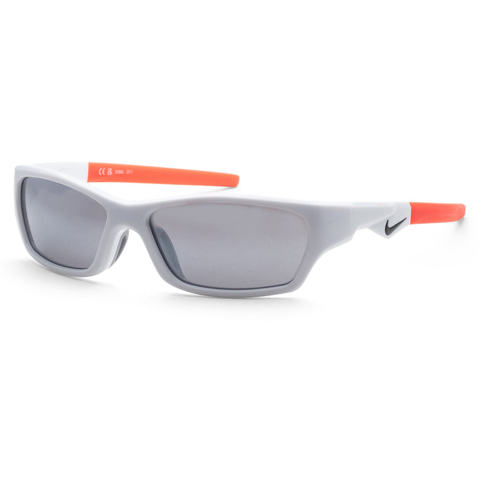 Dimensions: 57 mm x 15 mm x 130 mm - Frame Color: White - Frame Shape: Rectangular - Frame Material: Plastic - Lens Color: Silver Flash - Lens Protection: 100% UV Protection - Non-Polarized
