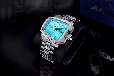 Introducing the cutting-edge Aragon Concept S Automatic timepiece. Boasting a striking 50mm case and lug-to-lug dimensions, this watch commands attention. Its massive sapphire crystal provides unparalleled durability and clarity. Powered by the reliable SII NH35 movement, it ensures precision timekeeping. With a water resistance of 200 meters. Featuring an inward jet engine-style screw-down crown, it merges futuristic design with functional excellence, making it a standout accessory for the modern enthusiast.