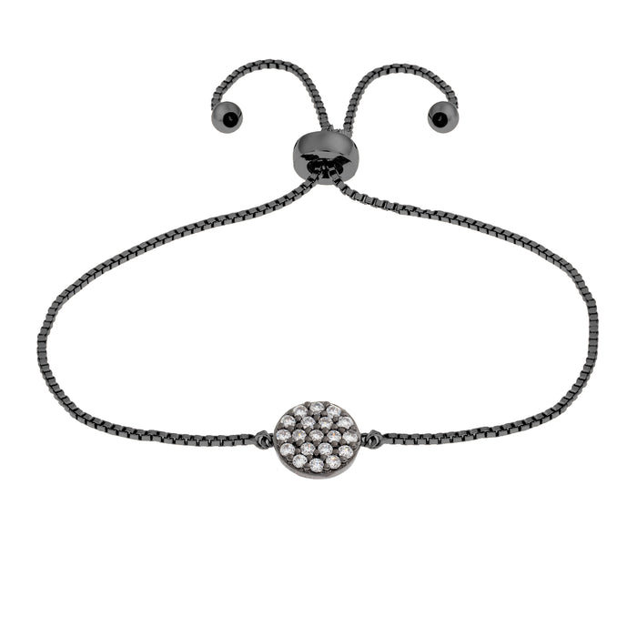 Elegant Confetti Women's 18K Black Gold Plated CZ Simulated Diamond Circle Adjustable Bolo Bracelet 18k Black Gold